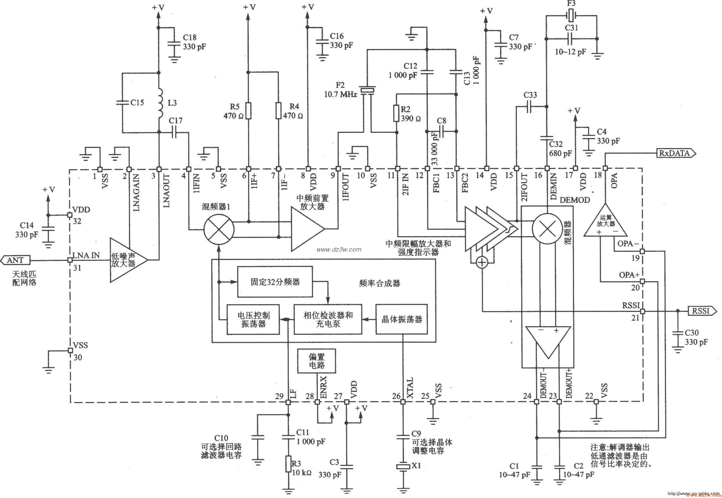 ASK/FSK/FM超外差式接收器RFRXD0920应用电路