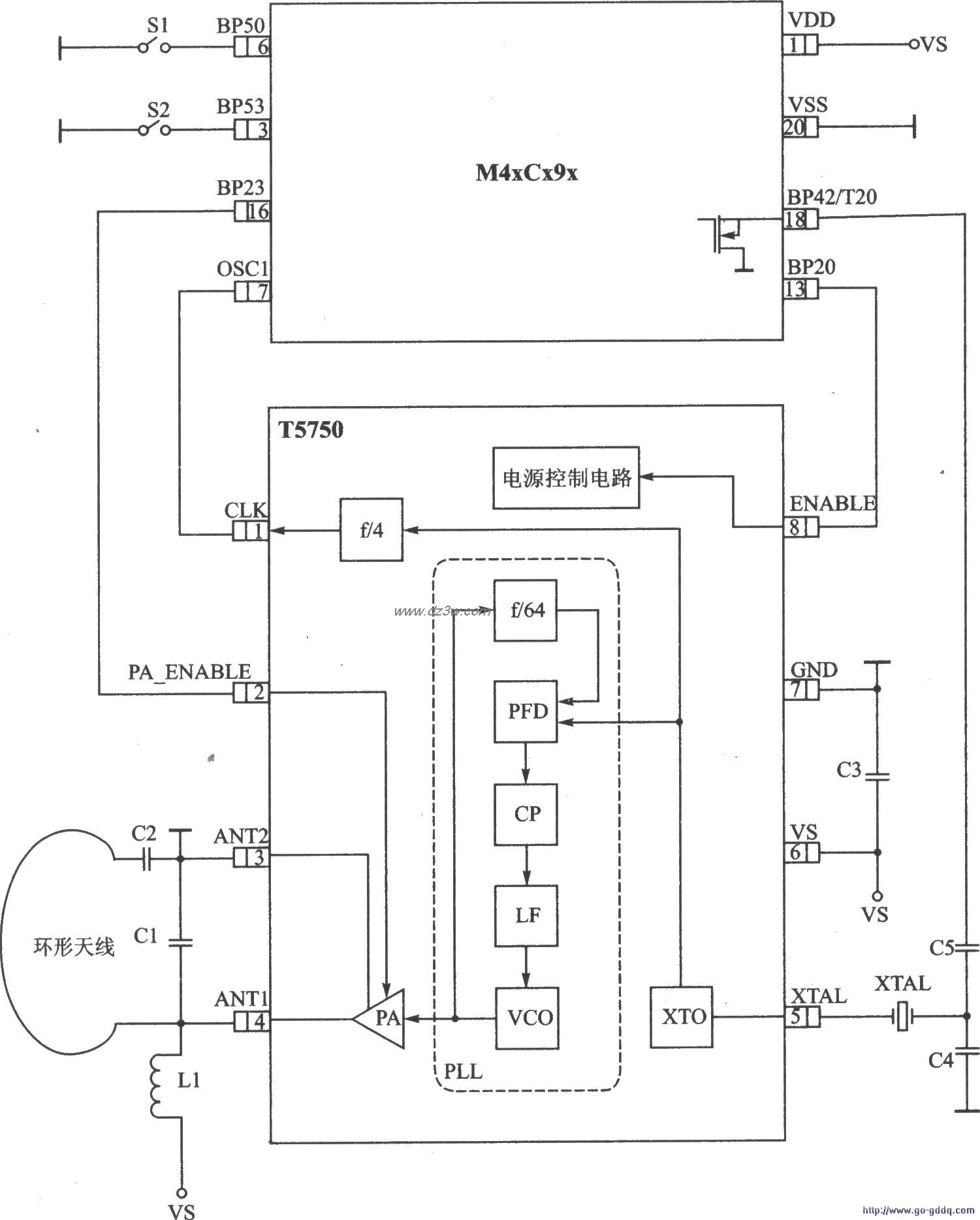 T5750是采用PLL(锁相环)结构的单片廉价发射器。