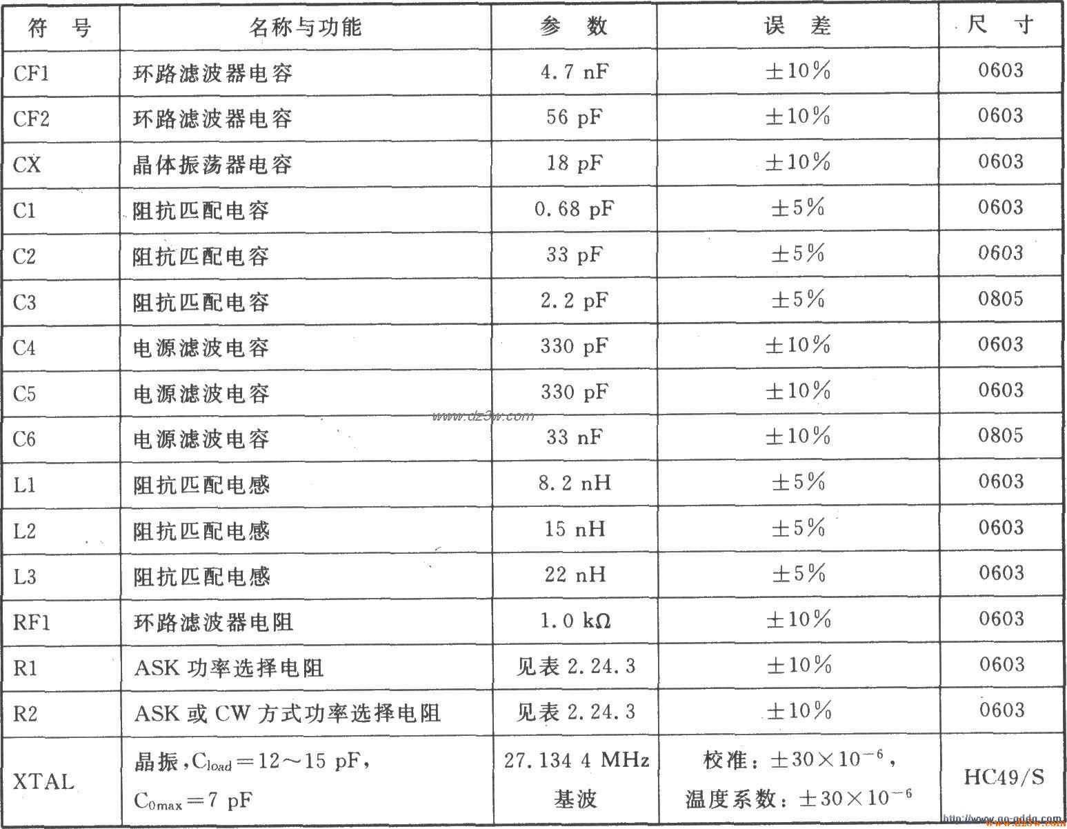 ASK发射器TH71081应用电路图 TH71081的ASK应用电路 TH71081的ASK应用电路的元器件参数