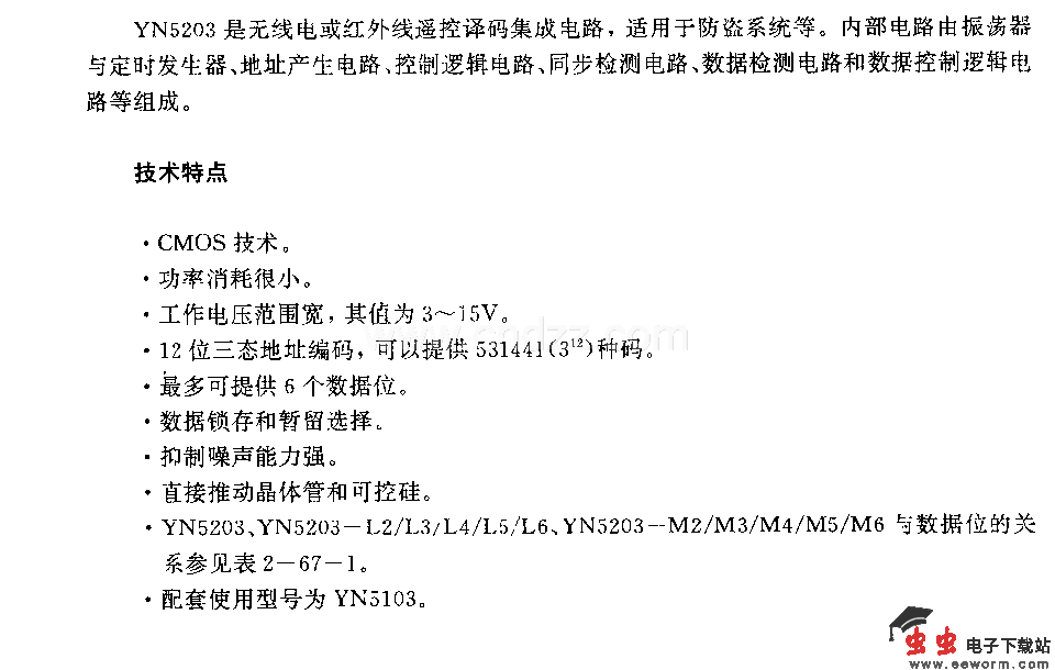 YN 5203 (防盗系统)无线电或红外线遥控译码电路
