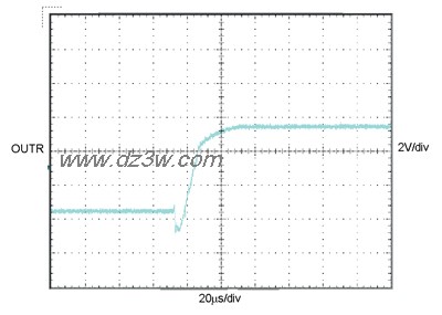 图4 图1中驱动一只 WM-R57A 压电式扬声器IC1 的 OUTR 输出端的阶跃响应,表明 IC1 是不随扬声器变化的.