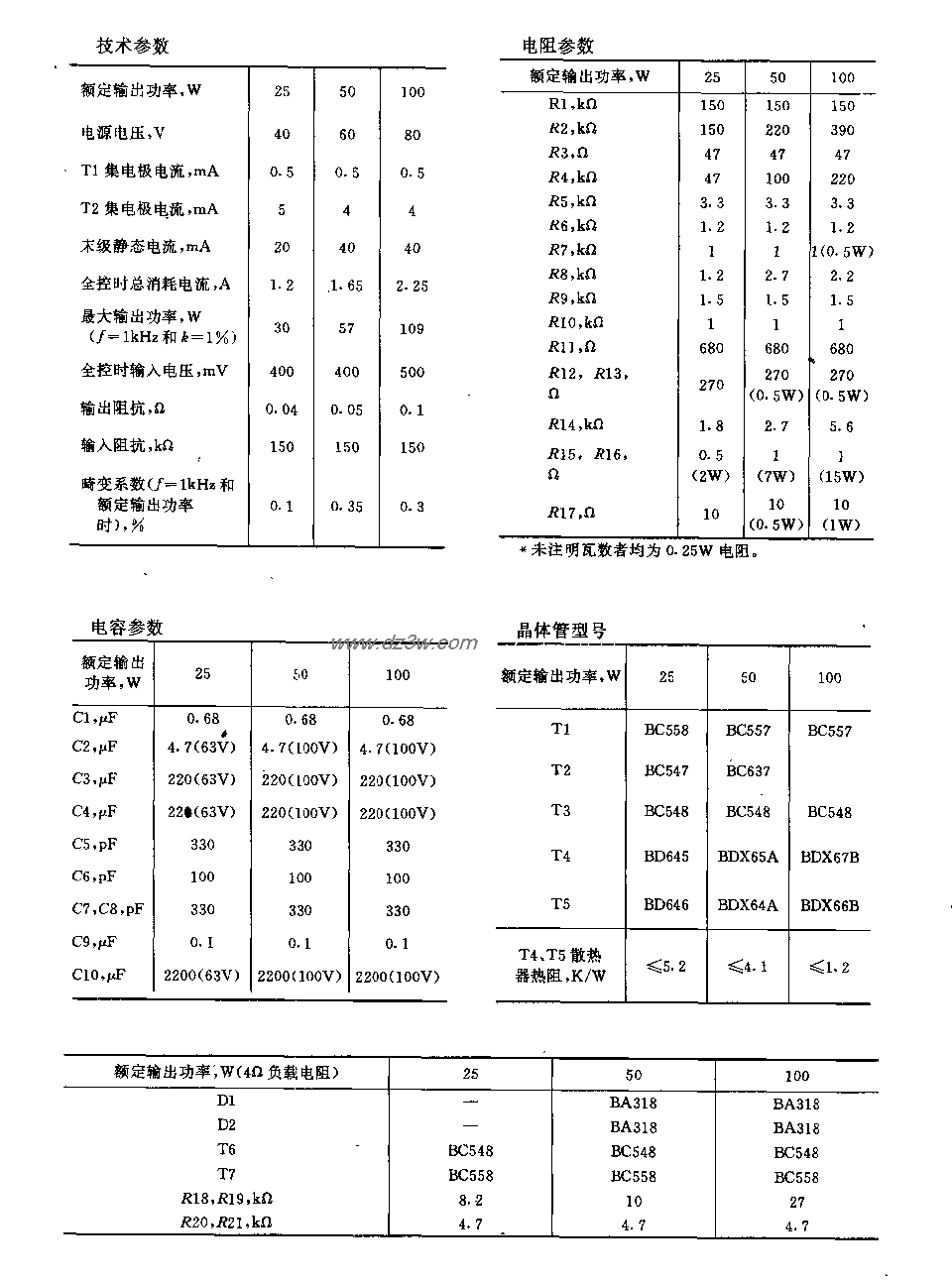 25w、50w和100W放大器电路